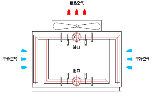 Dry cooling tower uses the power to drive the fan impeller to rotate, and the generated eddy current continuously sucks the air. After the cold air contacts with the heat exchange tube, it transfers heat and cools the medium in the tube to reach the designed outlet temperature.